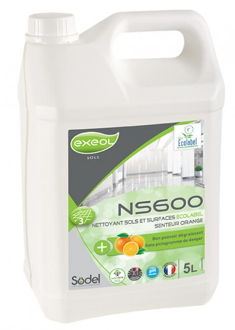 Nettoyant dégraissant alcalin quotidien concentré écolabel, NS600 solubilise et élimine les souillures mêmes tenaces sur tous les types de sols et surfaces lavables.
